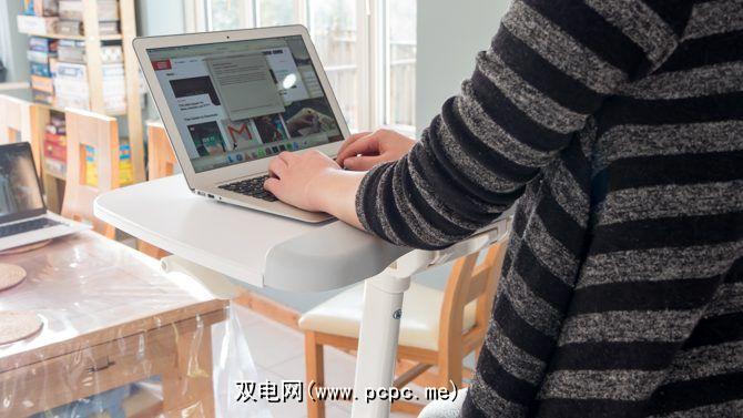 如果我对桌子有抱怨,那就是层压板的表面太滑。防滑涂层将是非常值得赞赏的。我在MacBook Air上使用过的塑料外壳在桌上根本无法使用,在测试来回调整时我几乎把它掉了4英尺。即使没有保护套,MacBook也具有光滑的塑料块,而不是下面的不粘橡胶垫。我尝试过的其他笔记本电脑根本没有这个问题。显然,与Flexispot相比,我在苹果上的牛肉更多,但我的观点是:您可能需要购买某种橡胶垫以防止打滑。