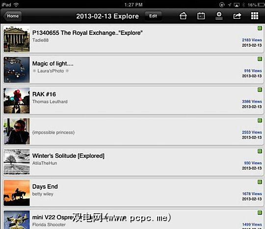 照片集可以查看为缩略图,也可以在视图中列出,其中包括缩略图,摄影师的姓名,照片发布的日期以及已收到的观看次数。