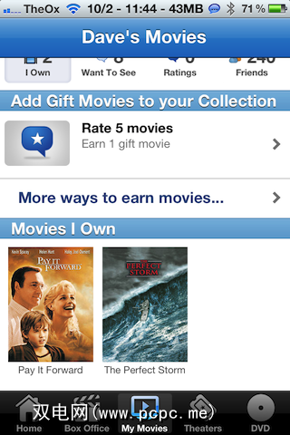 此部分与UltraViolet帐户相关联,使用它,您实际上可以获得一些免费电影供您观看。设备。这是与Facebook链接方便的地方。您仅拥有该应用程序即可获得一部免费电影。它是为您随机选择的,但它是免费的,因此您不会真正抱怨。您还可以通过邀请朋友加入应用程序,将电影添加到列表中并对电影进行评级来获得免费电影。