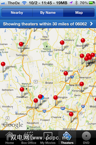 您可以在这里找到时间和地点。您所在地区正在播放电影。您可以将某些剧院设置为收藏夹,以便快速,轻松地进入它们。您还可以更改位置,因此,如果您知道自己正在旅行并且想查看目的地正在播放什么,则可以通过几次点击来完成。您可以在列表中查看剧院,该列表按距当前位置的距离或在地图上进行排序。