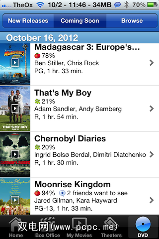 Flixster的最后一部分称为DVD。在这里,您可以找到发行日期和准备在小屏幕上播放的电影信息。您可以查看刚刚发行的DVD和即将上市的DVD。您还可以基于流派浏览DVD。