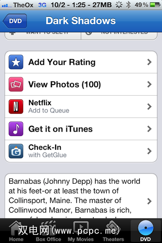 如果您单击特定的电影,该应用程序将允许您使用GetGlue签到,阅读评论家的评论,查看演员和工作人员等。这个应用程序确实是一站式商店,可观看与电影相关的所有事情。