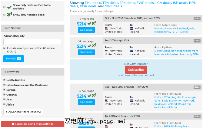 这很简单。输入您要飞离的城市。您可以选择过滤器,例如经过验证的交易,直飞航班或您想去的大陆。一分钟后,您会看到大量符合您需求的交易。单击看起来有趣的内容,按照通常的步骤预订机票,一切就好了。