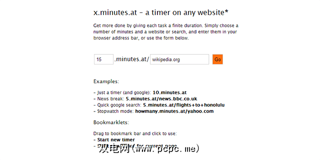 使用xMinutesAt,您可以在某个网站上花费“ X分钟",然后它会告诉您时间已经到了。该提醒可能是您需要采取的所有措施,关闭选项卡并重新开始工作。使用该网站也很容易。您所要做的就是输入您希望在宽限期后加上网站URL的时间。