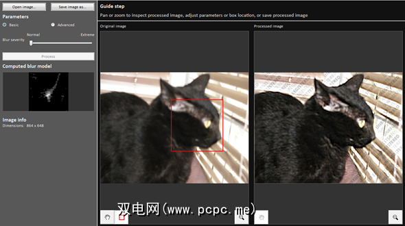 完成必修教程后,您可以开始进行模糊处理您自己的图像。为此,您需要将红色正方形放置在可以很好地表示模糊度的区域上,然后点击 Process 按钮。多数情况就是这样。
