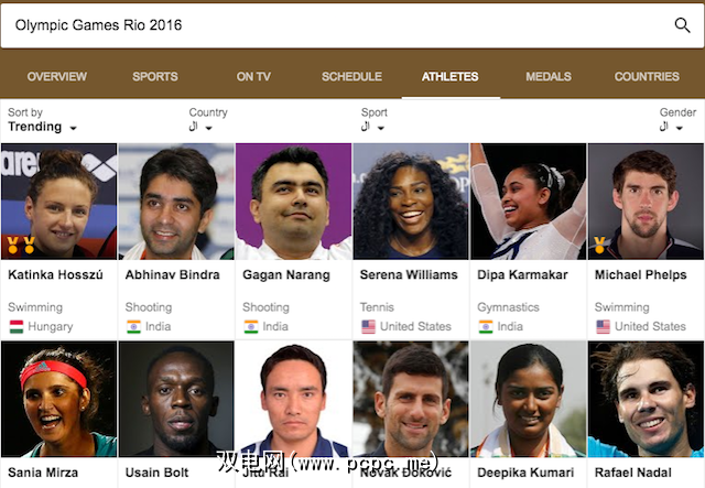 有趣的是,获取有关任何运动员,赛事或国家/地区的信息的最好方法是仅使用Google术语“ Olympics 2016"。这家搜索引擎巨头充分利用了其知识图技术,并通过Google.com本身建立了一个迷你奥运会网站。