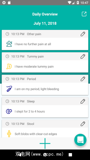 添加的其他因素包括大便,消化,精神状态,药物和补品,月经,皮肤状况,锻炼,睡眠和痛苦。随着时间的流逝,会出现各种模式,将您的健康与食物联系起来。因此,如果吃菠萝会使您出疹子,这是发现它的最佳应用。