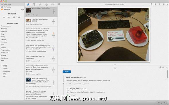 Reditr是免费的且跨平台的–从总体外观和缓慢的性能来看,我认为它是基于Adobe Air构建的。就像Reddit的TweetDeck一样,有多列可以进行…..并行浏览?