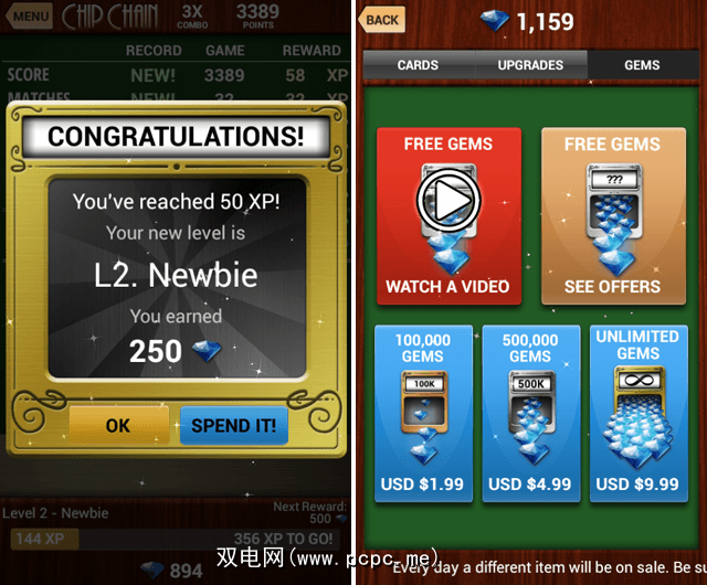 最后,有纸牌。您可以通过链接筹码组获得这些奖励,也可以使用游戏中的宝石货币购买奖励(稍后会详细介绍)。纸牌允许您执行特殊操作,例如增加或减少筹码价值。