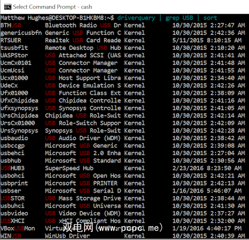 其中之一Cash可以做的最神奇的事情就是将Linux和Windows命令混合在一起。假设您要列出计算机上安装的所有USB驱动程序。