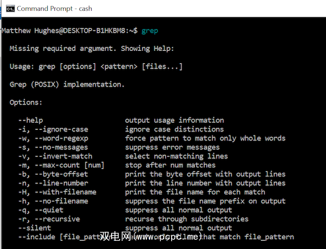 同样,Cash Cash的Grep实现与POSIX兼容,如下所示。当您考虑到每个实用程序实际上都是从头开始用JavaScript编写时,这非常了不起。