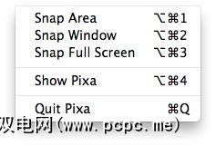 要获取屏幕快照,请使用菜单栏中的Pixa图标–从此处开始您可以选择捕捉特定区域,窗口或全屏快照。每个选项还带有专用的键盘快捷键。