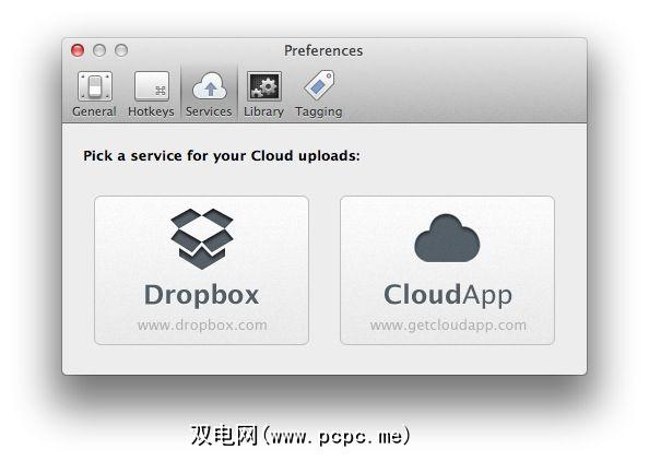 右键单击照片会弹出上下文菜单,其中包含多个选项,其中一个选项可让您将照片上传到两个服务之一。您可以将照片直接保存到Dropbox或CloudApp,但是当然必须授予Pixa访问您的帐户的权限。
