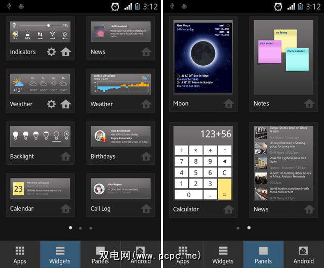 然后是面板,它们是填满整个页面的小部件。这些往往更闪光,更美丽,更有用。页面的选择小于窗口小部件的选择,但是可用的窗口小部件很有用:照片图库,用于快速浏览; 日历用于标记时间表和约会; 注释面板,用于创建和管理便利贴;