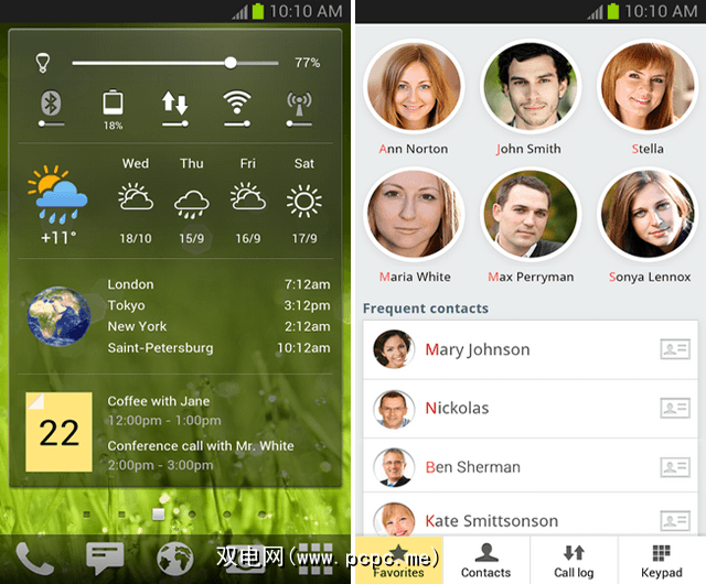 也许新拨号程序最有用的功能是添加< strong>收藏夹联系人。这与将联系人添加到快速拨号几乎一样,但是我发现这种实现更加直观。我个人以前从未使用过快速拨号,但是发现Yandex.Shell的拨号程序具有足够的吸引力来尝试使用它-我很喜欢。您可以自定义每个联系人的图片,但如果不自定义,Yandex.Shell仍将以不同的风景背景来区分他们。
