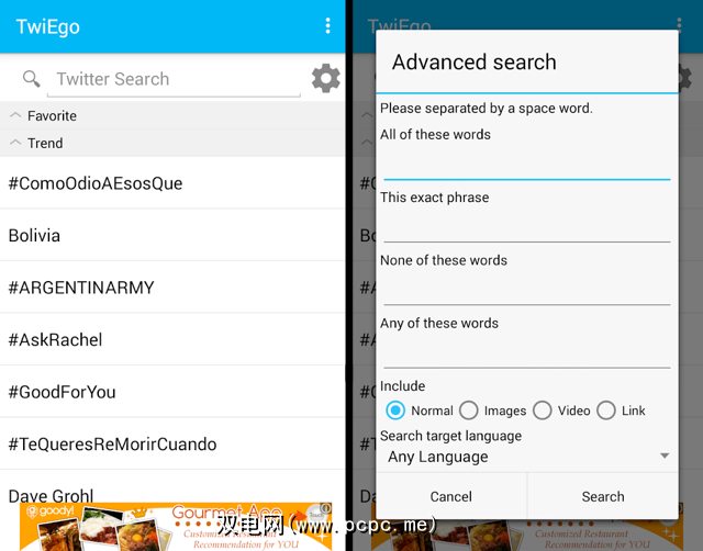 Twitter在移动设备上的基本搜索是可悲的。如果您想准确地找到一条推文,那么TwiEgo是您可以获得的最接近的推文。它具有Twitter的“高级搜索"功能的所有搜索参数,甚至可以保存这些搜索关键字以供以后参考。