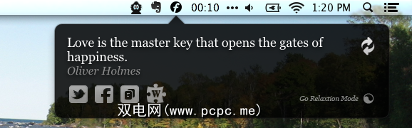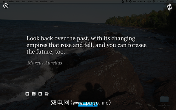 我正在这里查看Mac应用程序,但这不是该应用程序的唯一版本。如果您是Windows 8用户,则可以签出Metro界面的Forismatic应用。尽管没有覆盖层,但它基本上与上面的全屏模式相同。实时磁贴可让您每次在开始屏幕上都看到鼓舞人心的报价,这很不错。