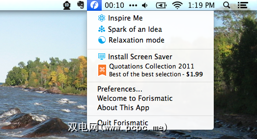 安装Forismatic,您会发现Mac菜单栏中的新图标。单击它以弹出菜单: