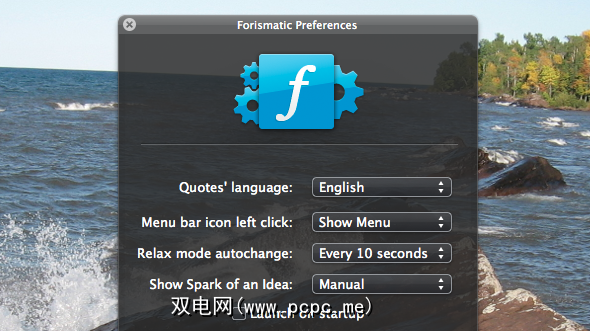 您还可以在此菜单上找到“偏好设置"。 Forismatic并不复杂,因此此处编辑的内容不多。