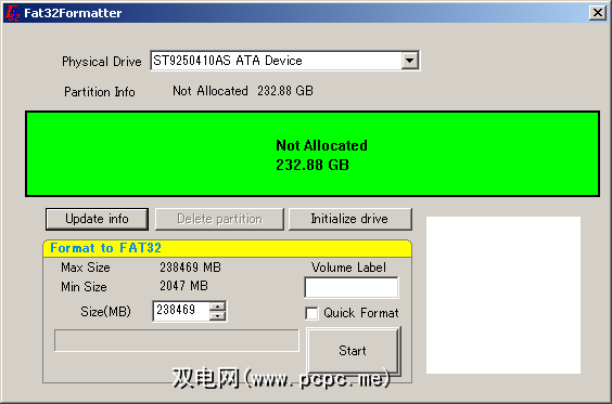 FAT32格式是一种基本的便携式GUI工具,不需要安装。它只是完成一项任务,而且效率很高:用FAT32格式化驱动器。