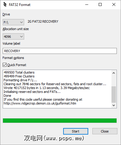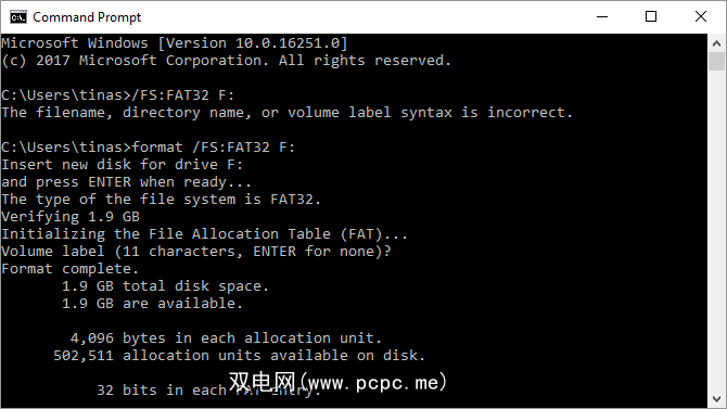 注意: 一些读者评论说,这种方法在几个小时后因“对于FAT32而言体积太大"错误而失败。为避免沮丧,请使用第三方工具或尝试以下的快速格式化选项。