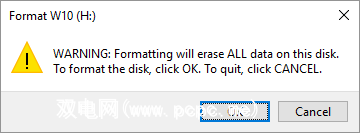 要格式化驱动器,只需简单地进行选择,请单击开始。 >,然后按确定以确认您确实要擦除所有数据并且驱动器将被格式化。