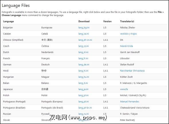 程序中另一个非常重要的属性是语言的多功能性– Fotografix确实可以做到这一点在撰写本文时,目前提供19种语言的版本。但是请记住,某些版本仅限于某些语言,并且版本2的预览目前仅支持英语。