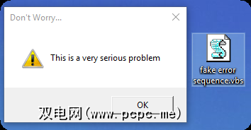 x=msgbox("YOUR MESSAGE HERE", Button+Icon, "YOUR TITLE HERE")在第一部分中键入您的恶作剧/吓人/幽默消息,并在第二部分中为对话框添加标题。