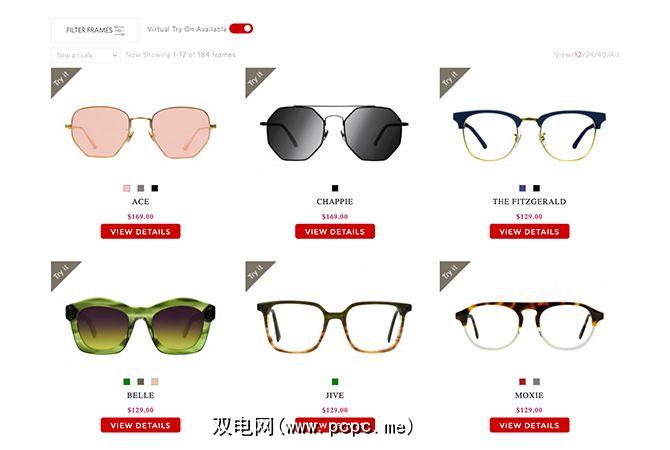 除了常规的零售功能外,该公司还有一个虚拟展位,可以帮助您挑选出适合自己脸部的最佳镜架。