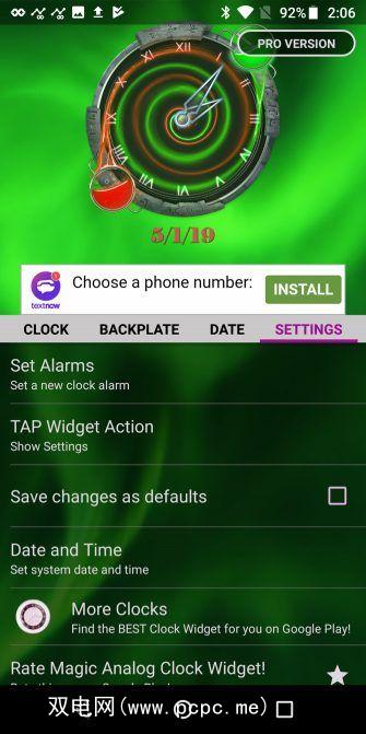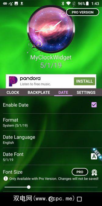 如果您想要一个真正酷的时钟用于您的Android主屏幕可提供大量自定义设置,请查看3D Galaxy Analog Clock。从五种尺寸中进行选择,然后调整二手,不透明度,自动颜色更改以及自定义或默认颜色的设置。