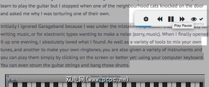 您不能暂停语音或前进或后退。此外,每次要触发播放时,导航到“编辑">“语音" 菜单都是很麻烦的。 Dictater通过添加一个界面来解决所有这些问题,添加了一个界面,使您可以更好地控制内置语音功能。