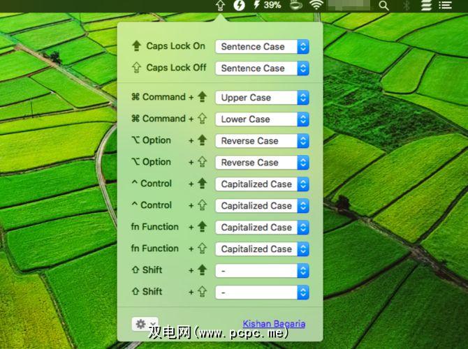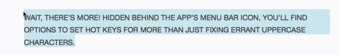 但是,还有更多!单击应用程序的菜单栏图标时,您会看到SmartCapsLock不仅用于修复错误的大写字符。您可以设置用于将文本与大写字母,小写字母,句子大小写,大写字母和大写字母以及大写字母和小写字母进行转换的热键。