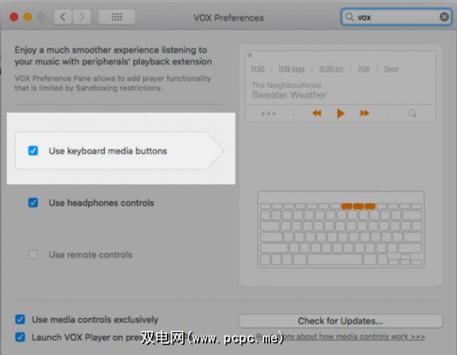 VOX Player用户,您可以安装专用的VOX扩展程序来控制具有媒体键的播放器。