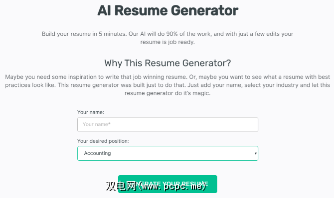 这也是一长串各种职位的清单,包括会计,调酒师,收银员,维护人员,机械师,老师,销售经理,工程学等等。添加您的名字,选择行业,AI每次都会创建一个新的简历。然后,您可以将其用作模板,以用自己的成就代替它。