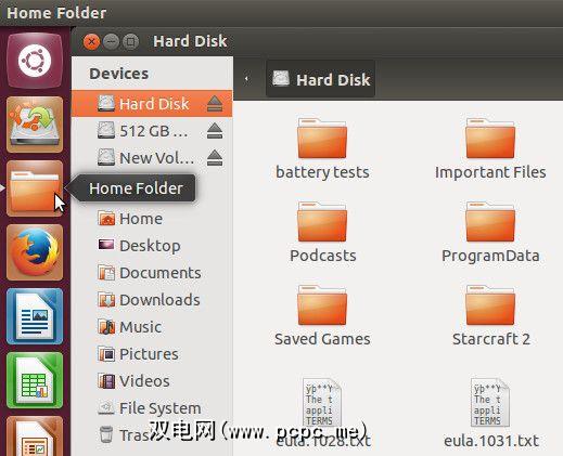 一旦Ubuntu运行,您应该会发现访问文件非常简单。在左侧的工具栏上,您将看到一个名为主文件夹的图标(它应该是顶部的第三个图标)。点击打开Ubuntu的文件浏览器。打开后,您应该在侧面的设备上看到一个或多个硬盘驱动器。您可以读取和删除文件,因为Ubuntu可以毫无问题地读取FAT32和NTFS。