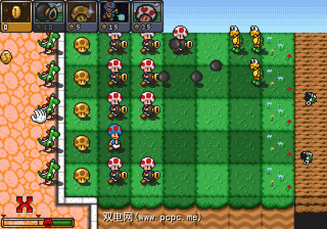 现在又有了一些不同:带有 Mario 主题的流行 Plant vs. Zombies 的小克隆。在此游戏中,您将蟾蜍炮放置在田野上并抵制了侵略性的Koopas。