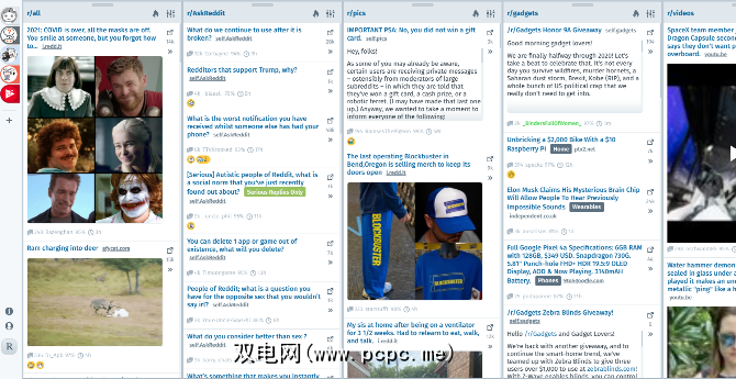 Reddup具有一些布局选项,包括类似于网格的拼贴。如果您访问诸如r / aww或r / EarthPorn之类的子目录,它们主要是关于共享图片,则这种布局是浏览它们的一种绝妙方式。