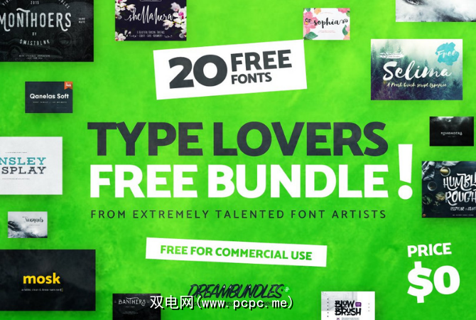 Type Lovers Bundle是Dreambundles免费提供的20种时尚字体的汇编,该服务提供了捆绑的设计资源。所有这些字体的样式都不同,并且都可以免费商业使用。