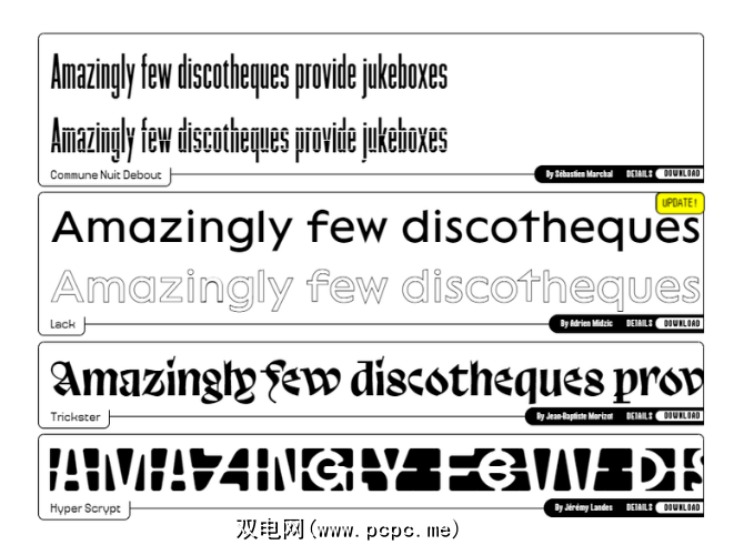 它们每个都可以单独下载,也可以小的zip文件形式下载。该站点还具有预览器,可让您测试字体。