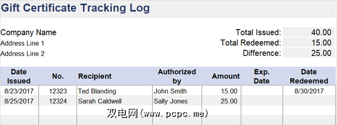 当您需要跟踪购买和兑换的礼券时,请确保已做好准备。这个来自Vertex42的方便的Microsoft Excel模板为您提供了一种记录所有详细信息的简便方法。