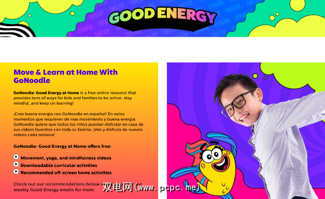 5。 GoNoodle在家中的好能量(Web):免费的儿童体育和运动游戏
