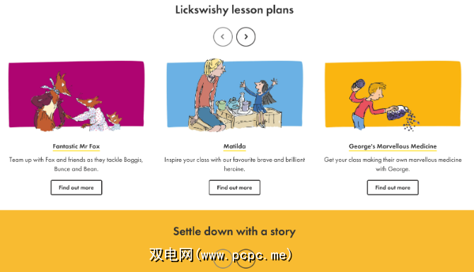 Dahl的网站试图尽可能地包容所有人。例如,视频讲故事部分以手语讲述了他的一些经典著作。另外,请从“创建和学习"页面下载庞大的活动包,其中包含测验,活动表,装扮创意等。