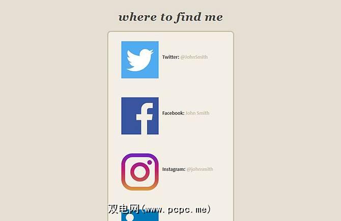 此模板是链接所有社交媒体网站的简便方法。您可以将其用作登录页面,该页面指向可以在网上找到所有其他站点。