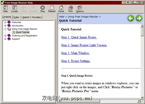 Free Images Resizer是一款非常容易使用的软件,可以立即开始使用。即便如此,该应用程序在安装后仍带有帮助索引。