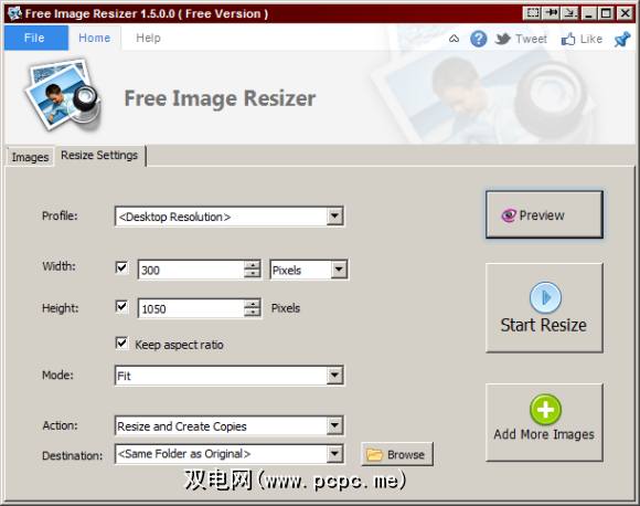 该选项听起来像 Resize Pictures Pro 并不是该软件的共享软件版本附带的某些功能。它将仅显示原始应用程序窗口,就好像您是通过程序本身添加了图像一样。从那里,您可以指定更多高级选项。