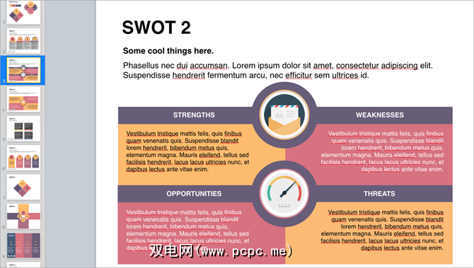 您是否正在寻找一个模板来绘制优势,劣势,机会和威胁(SWOT)图表?如果您愿意的话,这是一个了不起的选择,因为它提供了10种不同的布局。