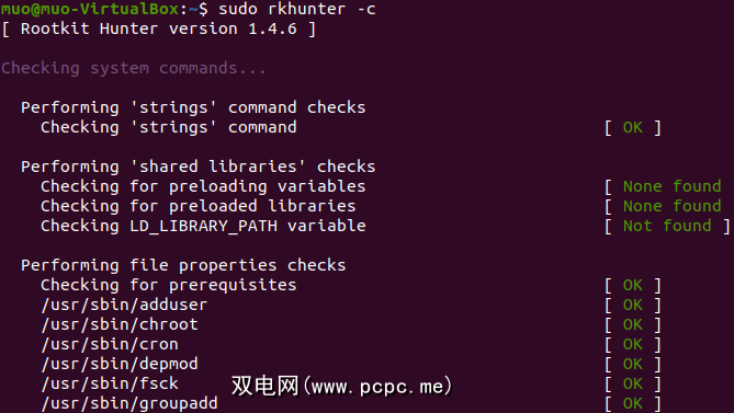 sudo apt install chkrootkit然后,您可以使用以下命令运行系统范围的rootkit扫描: