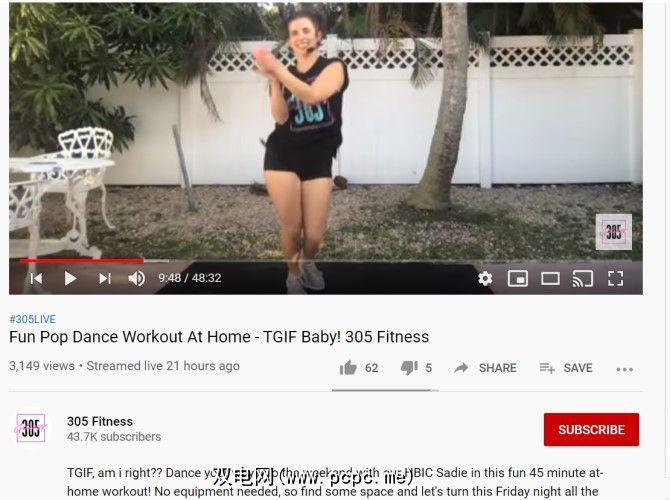 您可以在YouTube上观看305 Fitness的实时锻炼。工作室的热情指导员每天在美国东部时间下午12点和下午6点主持每次舞蹈有氧运动。