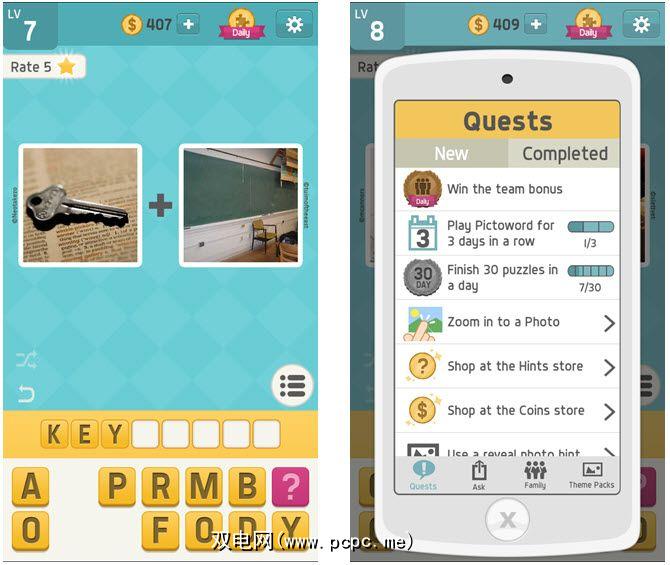 也许在玩文字游戏时,您喜欢将图片与之混合。如果是这样,请看一下 Pictoword 。这个非常规的单词挑战测试您的解决能力。您将看到两张图片组合在一起构成一个单词。例如,一张图片可能是钥匙,另一张可能是黑板。填写显示的字母数量,以根据图像创建一个单词:在这种情况下为键盘。