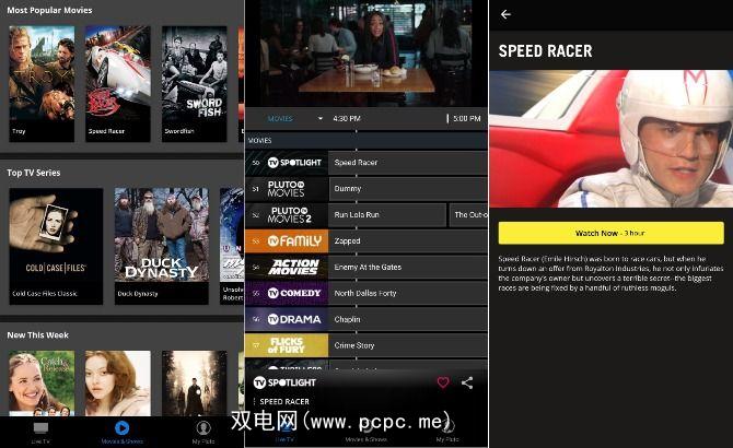冥王星电视是此列表中功能最丰富的免费电影应用程序之一。尽管具有许多功能,但它具有简单的用户界面。打开应用程序后,您会看到Pluto的免费电视频道,带有专用的免费电影和电视节目标签。